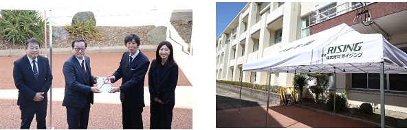 3月17日(火)、多くの本校卒業生がお世話になっている株式会社ライジング様より、テント3梁をご寄贈いただきました。体育祭等の学校行事やクラブ活動で本校生徒のために大いに活用したいと思います。職員、生徒より心から感謝申し上げます。